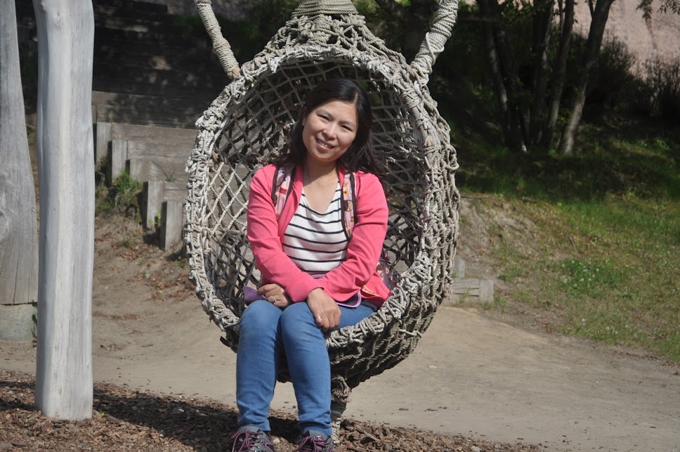 選在大樹下露營很涼爽,旁邊的遊樂器材也讓他們完好久。